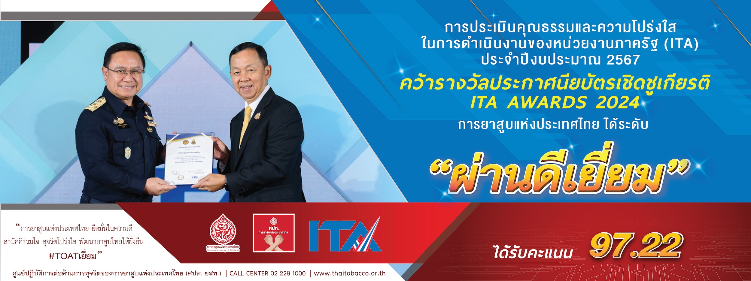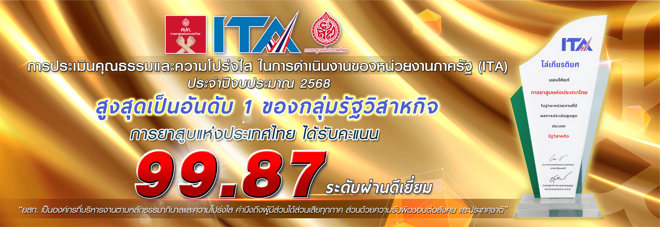 การยาสูบแห่งประเทศไทย สร้างประวัติศาสตร์หน้าใหม่ คว้ารางวัล ITA Awards 2025 องค์กรโปร่งใส อันดับ 1 สูงสุดในกลุ่มรัฐวิสาหกิจ