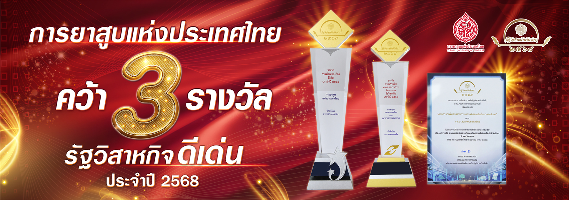 การยาสูบแห่งประเทศไทย สร้างประวัติศาสตร์หน้าใหม่ คว้ารางวัล ITA Awards 2025 องค์กรโปร่งใส อันดับ 1 สูงสุดในกลุ่มรัฐวิสาหกิจ