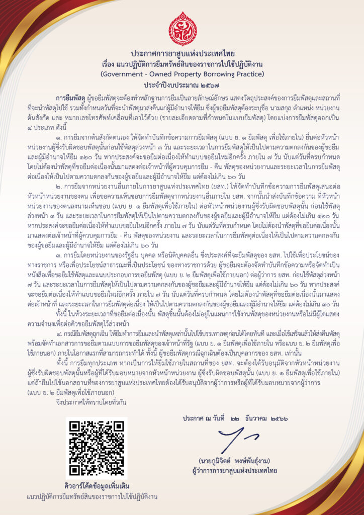 แนวปฏิบัติการยืมทรัพย์สินของราชการไปใช้ปฏิบัติงาน (Government – Owned PropertyBorrowing Practice)