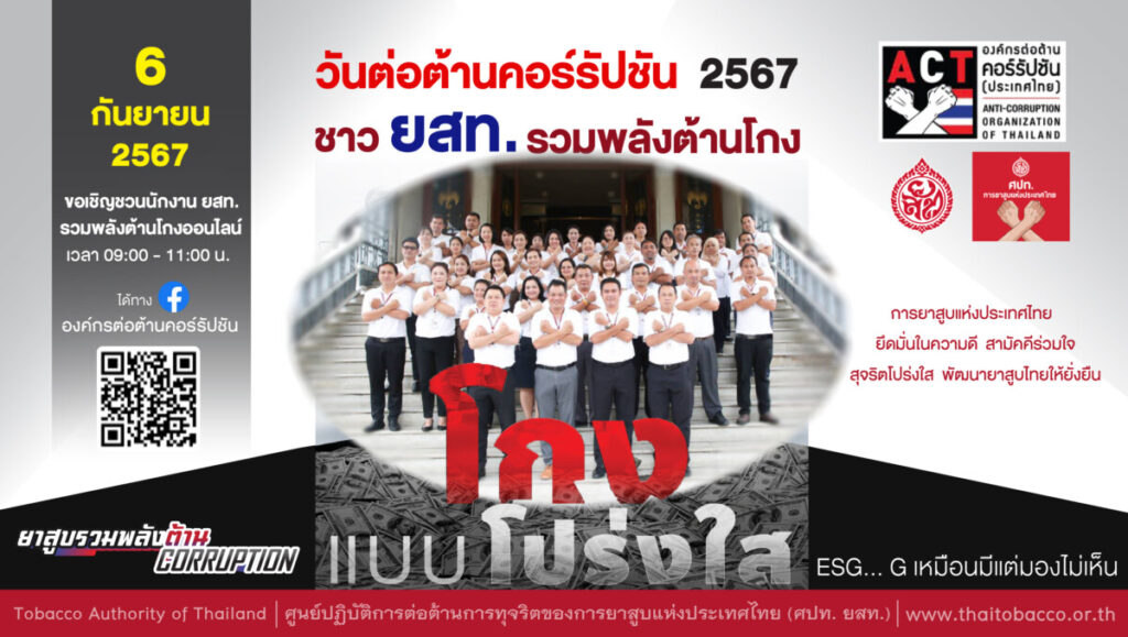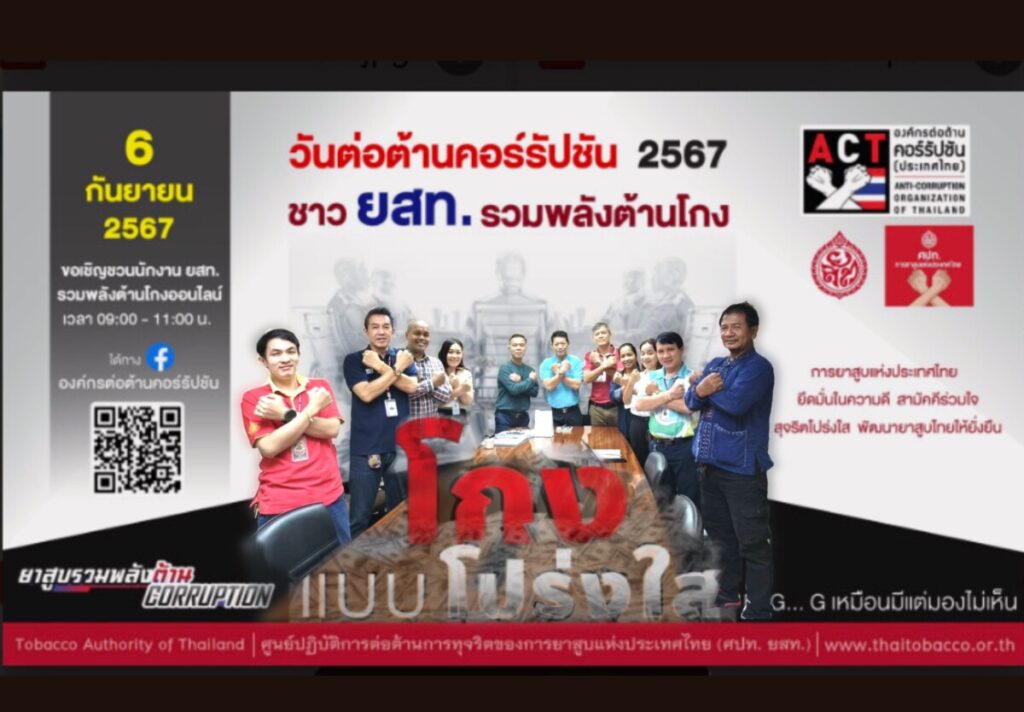 กิจกรรมวันต่อต้านคอร์รัปชัน 2567 การยาสูบแห่งประเทศไทยรวมพลังต้าน CORRUPTION