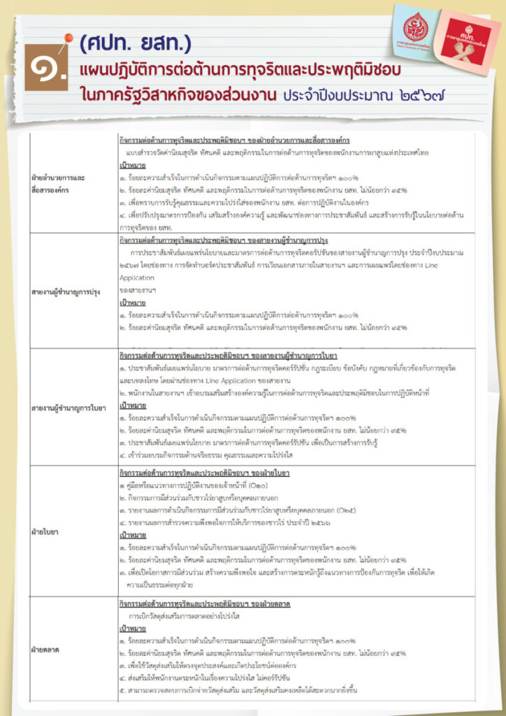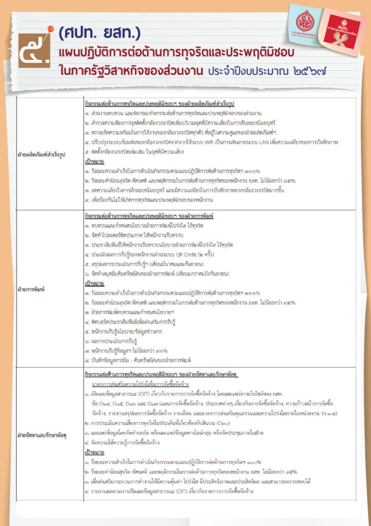 หน้าแรกเกี่ยวกับองค์กรคุณธรรมและความโปร่งใส (ITA)แผนปฏิบัติการต่อต้านการทุจริตและประพฤติมิชอบในภาครัฐวิสาหกิจของส่วนงาน ประจำปีงบประมาณ 2567 (เดือนสิงหาคม 2567) แผนปฏิบัติการต่อต้านการทุจริตและประพฤติมิชอบในภาครัฐวิสาหกิจของส่วนงาน ประจำปีงบประมาณ 2567 (เดือนสิงหาคม 2567) หมวดหมู่ :คุณธรรมและความโปร่งใส (ITA)ผลดำเนินงานตามแผนปฏิบัติการฯ ของส่วนงาน 1 ส.ค. ฝ่ายอำนวยการและสื่อสารองค์กรดาวน์โหลด 2 ส.ค. ผู้ชำนาญการปรุงดาวน์โหลด 3 ส.ค. ผู้ชำนาญการใบยาดาวน์โหลด 4 ส.ค. ฝ่ายใบยาดาวน์โหลด 5 ส.ค. ฝ่ายตลาดดาวน์โหลด 6 ส.ค. ฝ่ายขายดาวน์โหลด 7 ส.ค. ฝ่ายทรัพยากรบุคคลดาวน์โหลด 8 ส.ค. ฝ่ายตรวจสอบภายในดาวน์โหลด 9 ส.ค. ฝ่ายการแพทย์ดาวน์โหลด 10 ส.ค. ฝ่ายบริการกลางดาวน์โหลด 11 ส.ค. ฝ่ายบัญชีและการเงินดาวน์โหลด 12 ส.ค. ฝ่ายวิจัยและพัฒนาดาวน์โหลด 13 ส.ค. ฝ่ายยุทธศาสตร์องค์กรดาวน์โหลด 14 ส.ค. ฝ่ายวิศวกรรมและพัฒนาดาวน์โหลด 15 ส.ค. ฝ่ายวางแผนการผลิตดาวน์โหลด 16 ส.ค. ฝ่ายผลิตด้านใบยาดาวน์โหลด 17 ส.ค. ฝ่ายผลิตภัณฑ์สำเร็จรูปดาวน์โหลด 18 ส.ค. ฝ่ายการพิมพ์ดาวน์โหลด 19 ส.ค. ฝ่ายจัดหาและรักษาพัสดุดาวน์โหลด 20 ส.ค. สำนักคุณภาพ ความปลอดภัยและสิ่งแวดล้อมดาวน์โหลด 21 ส.ค. สำนักกฎหมายดาวน์โหลด 22 ส.ค. สำนักเทคโนโลยีสารสนเทศดาวน์โหลด 23 ส.ค. สำนักงบประมาณดาวน์โหลด 24 ส.ค. สำนักป้องกันบุหรี่ผิดกฎหมายดาวน์โหลด 25 ส.ค. สำนักโครงการย้ายโรงงานผลิตยาสูบฯดาวน์โหลด 26 ส.ค. สำนักพัฒนาธุรกิจดาวน์โหลด ศูนย์ ศปท. ยสท. 294 11 กันยายน 2024 ..เพิ่มเติม.. เผยแพร่ร่างประกาศประกวดราคา จ้างตัดเย็บชุดปฏิบัติงานพนักงานการยาสูบแห่งประเทศไทย ปีงบประมาณ 2569... งานซื้อกาวติดกระดาษพันก้นกรองเจาะรู จำนวน 50,000 กิโลกรัม... งานซื้อ พี พี ฟิล์ม... งานซื้ออะไหล่สำหรับใช้กับกลุ่มเครื่องจักรผลิตบุหรี่ PROTOS ที่การยาสูบแห่งประเทศไทย พระนครศรีอยุธยา... งานซื้อ Propylene Glycol จำนวน... เผยแพร่ร่างประกาศประกวดราคา จ้างตัดเย็บชุดปฏิบัติงานพนักงานการยาสูบแห่งประเทศไทย ปีงบประมาณ... งานซื้อกาวติดกระดาษพันก้นกรองเจาะรู จำนวน 50,000... งานซื้อ พี พี... งานซื้ออะไหล่สำหรับใช้กับกลุ่มเครื่องจักรผลิตบุหรี่ PROTOS ที่การยาสูบแห่งประเทศไทย... งานซื้อ Propylene Glycol... งานจ้างปรับปรุงระบบบำบัดน้ำเสียและฐานรองรับ พร้อมอุปกรณ์และค่าติดตั้ง บริเวณชั้น...