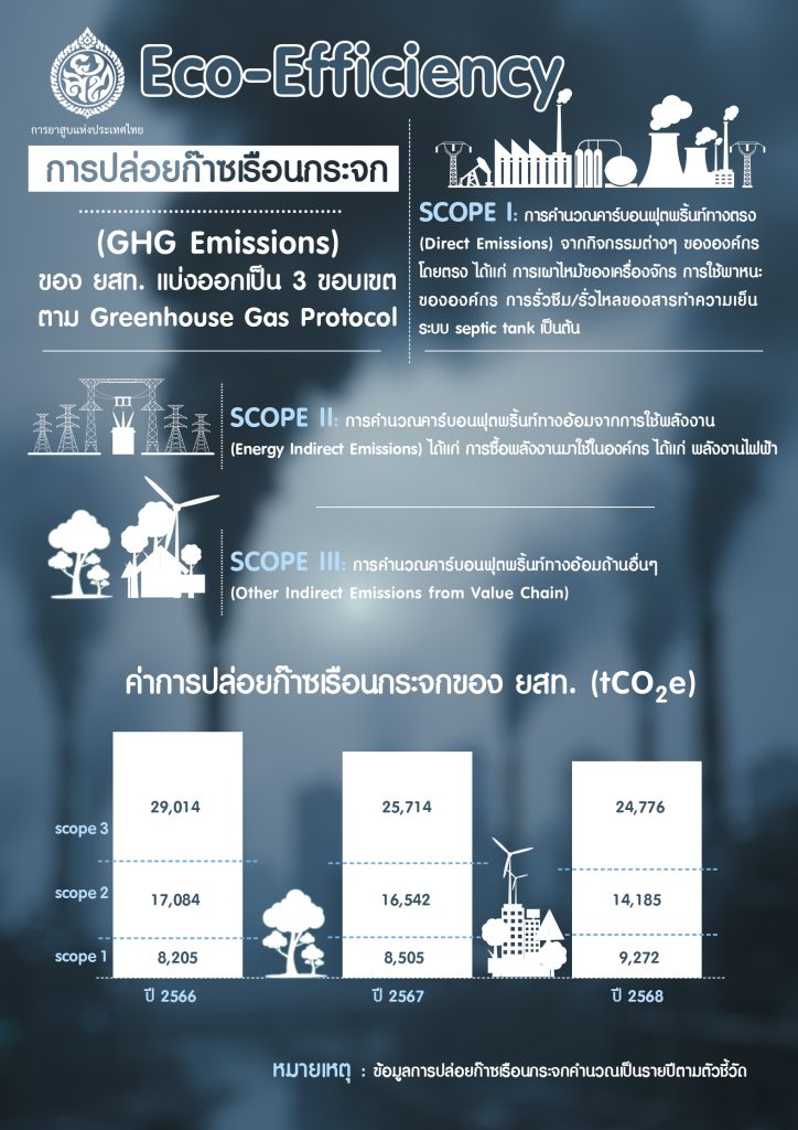 หน้าแรกผลการดำเนินงานประจำปีการดำเนินงานตามนโยบายรัฐผลการดำเนินงานโครงการสร้างประสิทธิภาพเชิงนิเวศเศรษฐกิจ (Eco-Efficiency) 2568