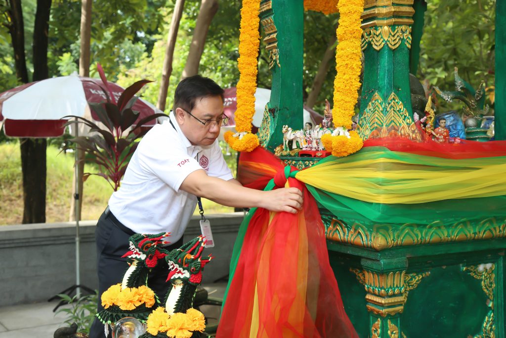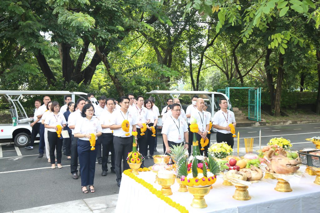 นายภูมิจิตต์ พงษ์พันธุ์งาม ผู้ว่าการการยาสูบแห่งประเทศไทย พร้อมด้วยคณะผู้บริหาร ร่วมพิธีบวงสรวงและสักการะสิ่งศักดิ์สิทธิ์ภายในการยาสูบแห่งประเทศไทย ได้แก่ พระพุทธวิสุทธิมงคล พระภูมิเจ้าที่ (หลวงปู่ชัยมงคล) เสด็จปู่นาคราช และรูปปั้น พลตรี หลวงชำนาญยุทธศิลป์ เพื่อความเป็นสิริมงคลเนื่องในโอกาสเริ่มต้นปีงบประมาณ 2569 เมื่อวันที่ 3 ตุลาคม 2568