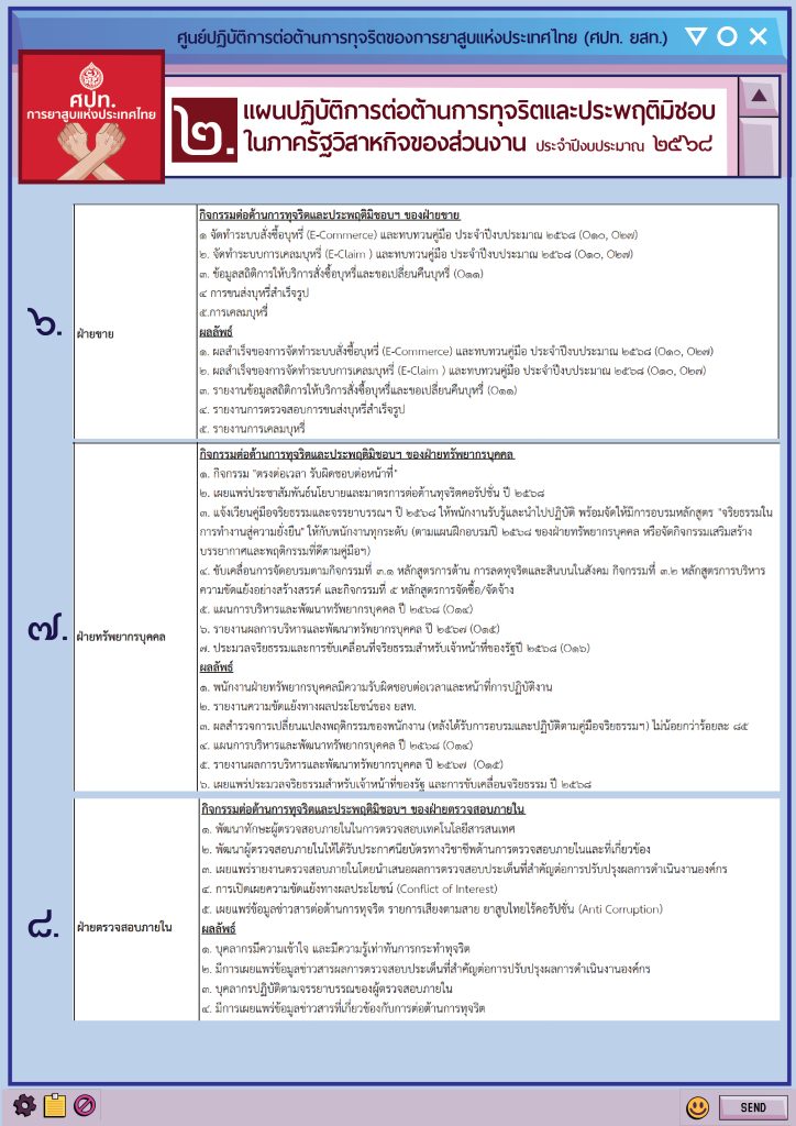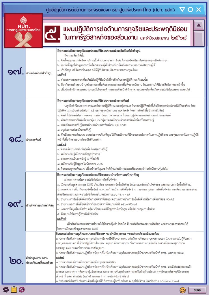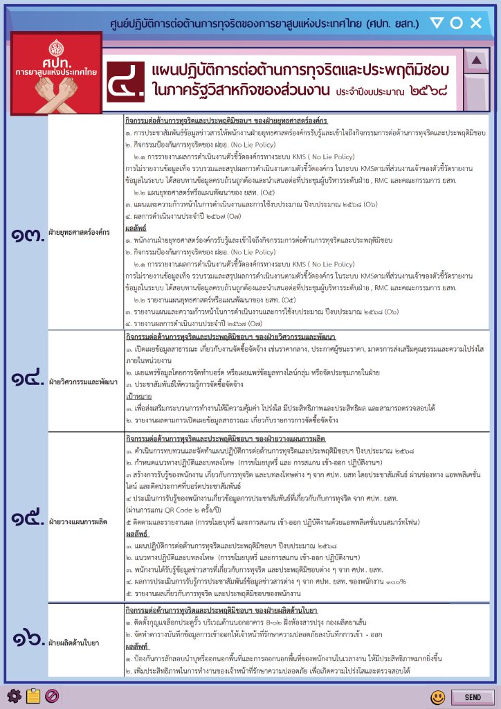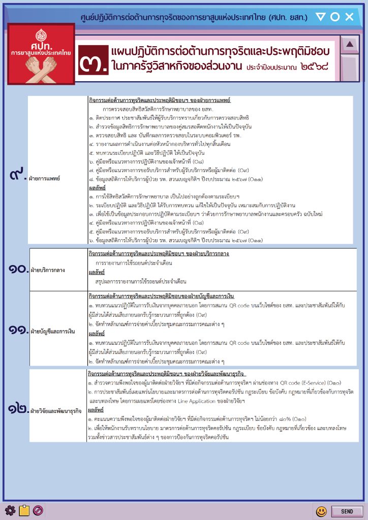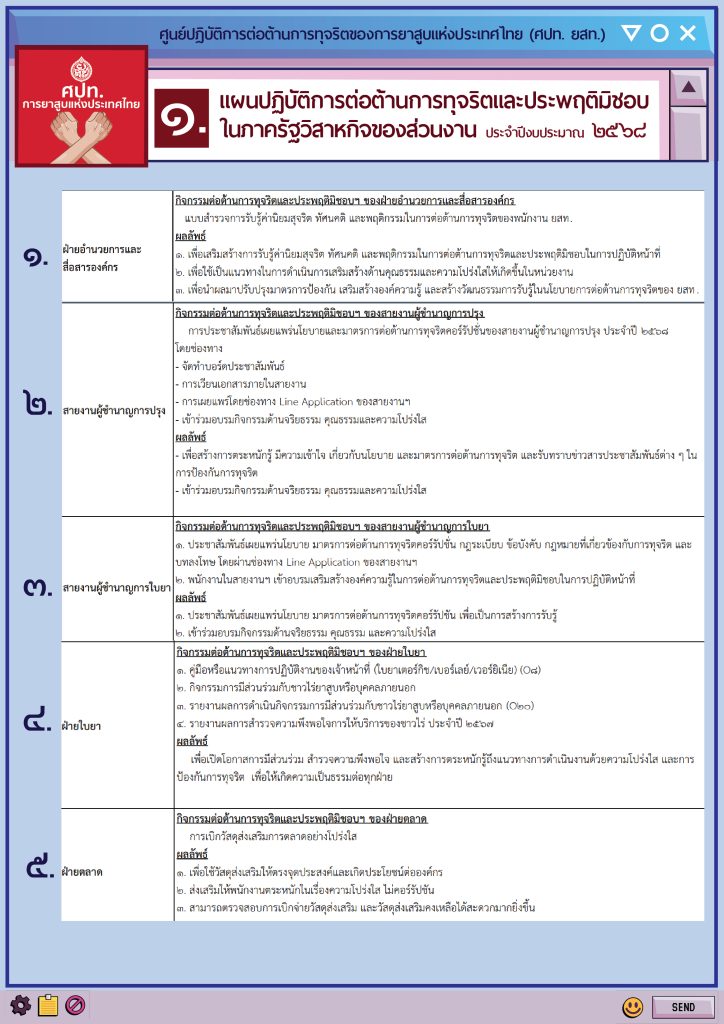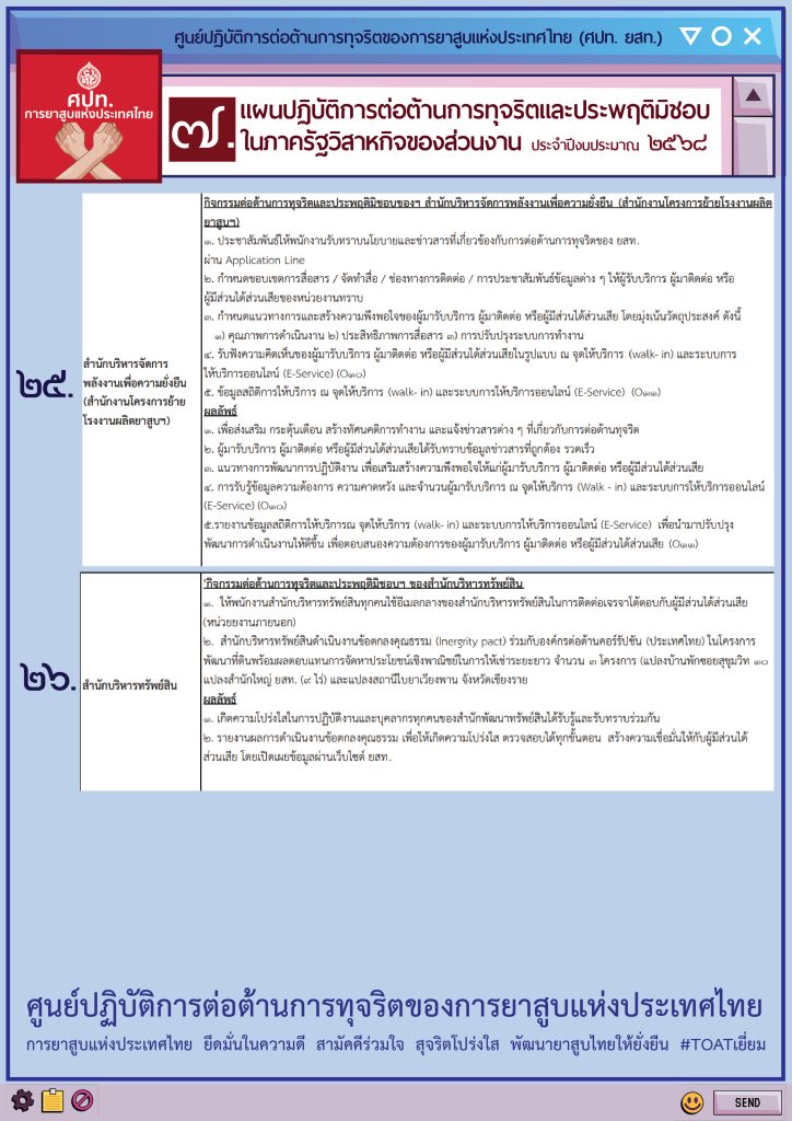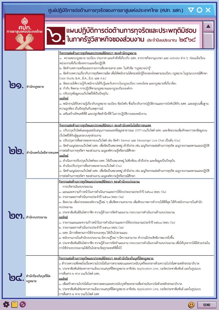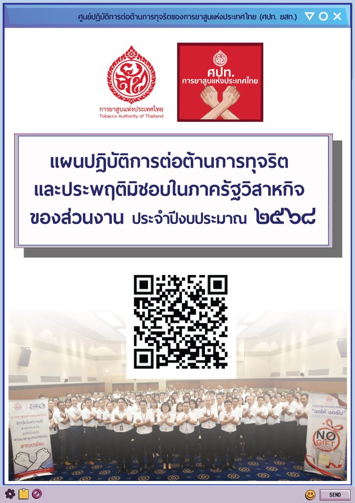 หน้าแรกเกี่ยวกับองค์กรคุณธรรมและความโปร่งใส (ITA)แผนปฏิบัติการต่อต้านการทุจริตและประพฤติมิชอบในภาครัฐวิสาหกิจของส่วนงาน ประจำปีงบประมาณ 2569 (เดือนกันยายน 2568) แผนปฏิบัติการต่อต้านการทุจริตและประพฤติมิชอบในภาครัฐวิสาหกิจของส่วนงาน ประจำปีงบประมาณ 2569 (เดือนกันยายน 2568) หมวดหมู่ :คุณธรรมและความโปร่งใส (ITA)ผลดำเนินงานตามแผนปฏิบัติการฯ ของส่วนงาน 1 ก.ย. ฝ่ายอำนวยการและสื่อสาอรงค์กรดาวน์โหลด 2 ก.ย. ผู้ชำนาญการปรุงดาวน์โหลด 3 ก.ย. ผู้ชำนาญการใบยาดาวน์โหลด 4 ก.ย.ฝ่ายใบยาดาวน์โหลด 5 ก.ย. ฝ่ายตลาดดาวน์โหลด 6 ก.ย. ฝ่ายขายดาวน์โหลด 7 ก.ย. ฝ่ายทรัพยากรบุคคลดาวน์โหลด 8 ก.ย. ฝ่ายตรวจสอบภายในดาวน์โหลด 9 ก.ย.ฝ่ายการแพทย์ดาวน์โหลด 10 ก.ย. ฝ่ายบริการกลางดาวน์โหลด 11 ก.ย. ฝ่ายบัญชีและการเงินดาวน์โหลด 12 ก.ย. ฝ่ายวิจัยและพัฒนาธุรกิจดาวน์โหลด 13 ก.ย. ฝ่ายยุทธศาสตร์องค์กรดาวน์โหลด 14 ก.ย. ฝ่ายวิศวกรรมและพัฒนาดาวน์โหลด 15 ก.ย. ฝ่ายวางแผนการผลิตดาวน์โหลด 16 ก.ย. ฝ่ายผลิตด้านใบยาดาวน์โหลด 17 ก.ย. ฝ่ายผลิตภัณฑ์สำเร็จรูปดาวน์โหลด 18 ก.ย. ฝ่ายการพิมพ์ดาวน์โหลด 19 ก.ย. ฝ่ายจัดหาและรักษาพัสดุดาวน์โหลด 20 ก.ย. สำนักคุณภาพ ความปลอดภัยและสิ่งแวดล้อมดาวน์โหลด 21 ก.ย. สำนักกฎหมายดาวน์โหลด 22 ก.ย. สำนักเทคโนโลยีสารสนเทศดาวน์โหลด 23 ก.ย. สำนักงบประมาณดาวน์โหลด 24 ก.ย. สำนักป้องกันบุหรี่ผิดกฎหมายดาวน์โหลด 25 ก.ย. สำนักบริหารจัดการพลังงานเพื่อความยั่งยืนดาวน์โหลด 26 ก.ย.สำนักบริหารทรัพย์สินดาวน์โหลด ศูนย์ ศปท. ยสท. 25 16 ตุลาคม 2025 ..เพิ่มเติม.. ประกาศการยาสูบแห่งประเทศไทย เรื่อง เปลี่ยนแปลงแผนการจัดซื้อจัดจ้าง ประจำปีงบประมาณ... เผยแพร่แผนการจ้างทำของที่ระลึกสำหรับใช้ในโอกาสวันขึ้นปีใหม่ ประจำปี 2569 ยสท. ประชุมเจรจาร่างบันทึกข้อตกลงประเมินการดำเนินงาน ประจำปีงบประมาณ 2569 รายงานผลการขับเคลื่อนนโยบาย No Gift Policy... แผนการจัดซื้อจัดจ้างโครงการซื้อสิทธิ์โปรแกรม Microsoft Office จำนวน... ประกาศการยาสูบแห่งประเทศไทย เรื่อง เปลี่ยนแปลงแผนการจัดซื้อจัดจ้าง... เผยแพร่แผนการจ้างทำของที่ระลึกสำหรับใช้ในโอกาสวันขึ้นปีใหม่ ประจำปี 2569 ยสท. ประชุมเจรจาร่างบันทึกข้อตกลงประเมินการดำเนินงาน ประจำปีงบประมาณ... รายงานผลการขับเคลื่อนนโยบาย No Gift... แผนการจัดซื้อจัดจ้างโครงการซื้อสิทธิ์โปรแกรม Microsoft Office... ประกาศเผยแพร่แผนการจัดจ้างเหมาซ่อมบำรุงรักษาเครื่องพิมพ์กราเวียร์ แบบป้อนม้วน 8...