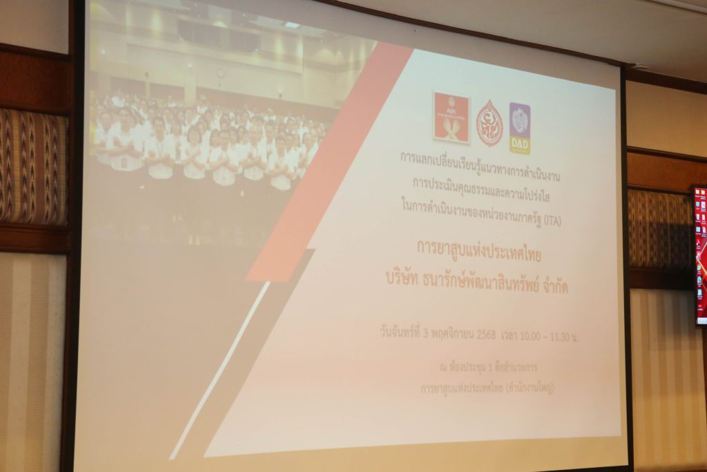 นายภูมิจิตต์ พงษ์พันธุ์งาม ผู้ว่าการการยาสูบแห่งประเทศไทย (ยสท.) ในฐานะหัวหน้าคณะทำงานศูนย์ปฏิบัติการต่อต้านการทุจริต การยาสูบแห่งประเทศไทย (ศปท.ยสท.) พร้อมด้วยคณะทำงาน ให้การต้อนรับคณะผู้บริหารและเจ้าหน้าที่จากบริษัท ธนารักษ์พัฒนาสินทรัพย์ จำกัด (ธพส.) นำโดยนายธีธัช สุขสะอาด รองกรรมการผู้จัดการ ในฐานะประธานคณะทำงานศูนย์ปฏิบัติการต่อต้านการทุจริต ธพส. พร้อมด้วยคณะทำงานฯ ของ ธพส. ในโอกาสเข้าร่วมประชุมแลกเปลี่ยนเรียนรู้แนวทางการประเมินคุณธรรมและความโปร่งใสในการดำเนินงานภาครัฐ (ITA) เพื่อเปิดโอกาสให้ ธพส. ได้นำประสบการณ์และแนวทางการดำเนินงานที่ประสบความสำเร็จของการยาสูบแห่งประเทศไทย ไปประยุกต์ใช้ในการพัฒนาการดำเนินงานของ ธพส. ให้มีประสิทธิภาพยิ่งขึ้น ณ ห้องประชุม 1 ชั้น 3 ตึกอำนวยการ การยาสูบแห่งประเทศไทย สำนักงานใหญ่ เมื่อวันที่ 3 พฤศจิกายน 2568