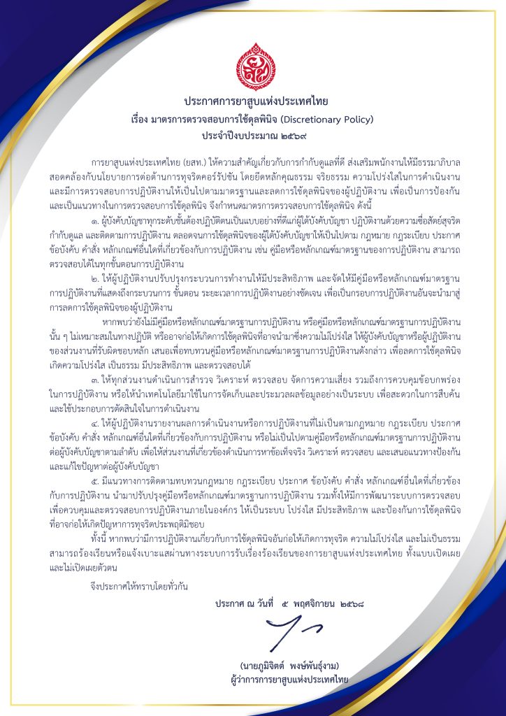 มาตรการตรวจสอบการใช้ดุลพินิจ (Discretionary Policy) ประจำปีงบประมาณ 2569