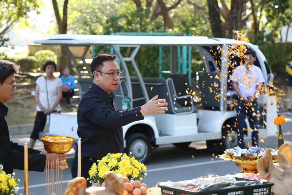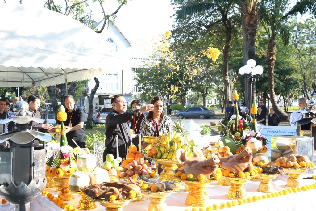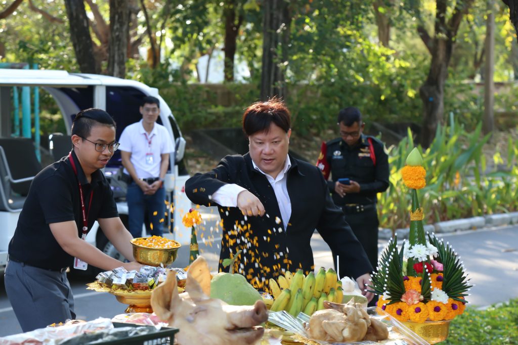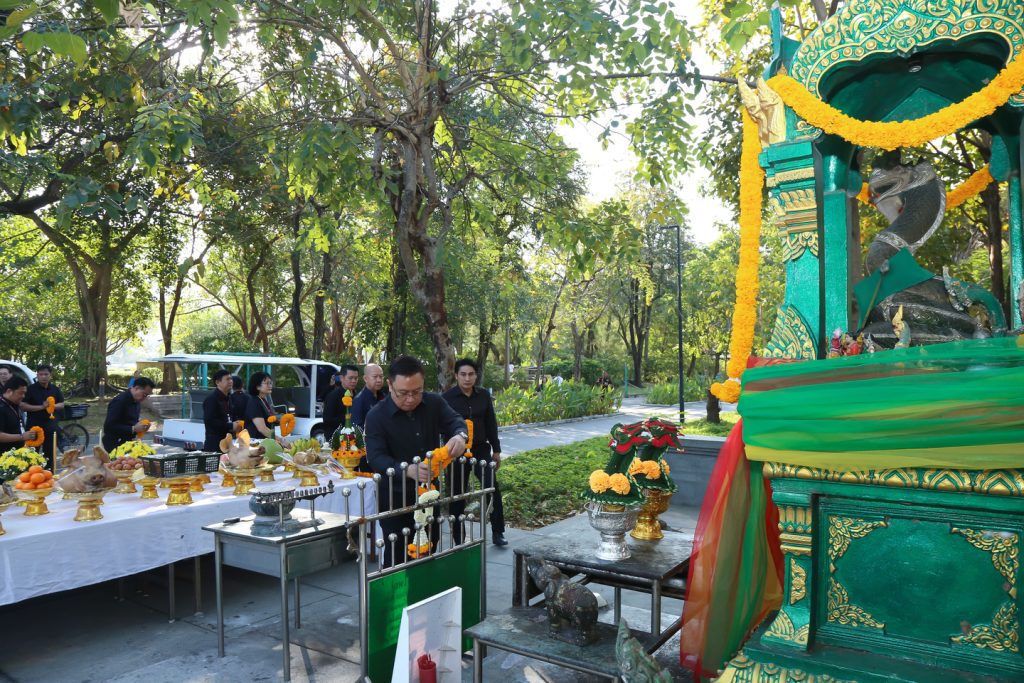 ผู้ช่วยศาสตราจารย์ทศพล สอตระกูล กรรมการการยาสูบแห่งประเทศไทย (ยสท.) นายภูมิจิตต์ พงษ์พันธุ์งาม ผู้ว่าการ พร้อมด้วยรองผู้ว่าการและคณะผู้บริหาร ยสท. ร่วมพิธีบวงสรวงเคารพสักการะสิ่งศักดิ์สิทธิ์ที่พนักงาน ยสท. ให้ความเคารพนับถือ ได้แก่ พระพุทธวิสุทธิมงคล พระภูมิเจ้าที่ (หลวงปู่ชัยมงคล) เสด็จปู่นาคราช และรูปปั้น พลตรี หลวงชำนาญยุทธศิลป์ เนื่องในโอกาสวันขึ้นปีใหม่ พุทธศักราช 2569 ณ การยาสูบแห่งประเทศไทย สำนักงานใหญ่ เมื่อวันที่ 7 มกราคม 2569