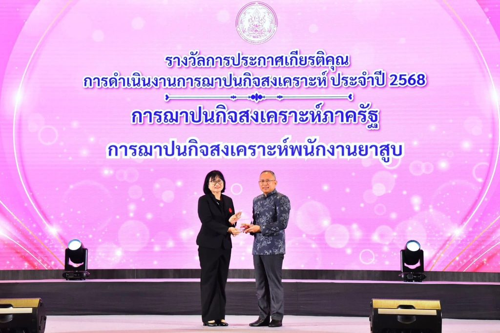 นางสาวศุภมาส  กระจ่างสด  รองผู้ว่าการด้านบริหาร การยาสูบแห่งประเทศไทย (ยสท.) เข้ารับมอบโล่ประกาศเกียรติคุณการดำเนินงานการฌาปนกิจสงเคราะห์ จากนายกันตพงศ์  รังสีสว่าง ปลัดกระทรวงการพัฒนาสังคมและความมั่นคงของมนุษย์ ในงานประกาศเกียรติคุณการดำเนินงานการฌาปนกิจสงเคราะห์ ประจำปี 2568 ในฐานะหน่วยงานที่ให้ความร่วมมือในการขับเคลื่อนงานการฌาปนกิจสงเคราะห์ โดยมีผู้บริหารและเจ้าหน้าที่กระทรวง เจ้าหน้าที่การฌาปนกิจสงเคราะห์ภาครัฐและสมาคมฌาปนกิจสงเคราะห์ หน่วยงานภาครัฐ ภาคเอกชน ภาคประชาสังคมเข้าร่วมงาน ณ ห้องแกรนด์ ไดมอนด์ บอลรูม อาคารอิมแพ็ค ฟอรั่ม เมืองทองธานี จังหวัดนนทบุรี เมื่อวันที่ 3 กุมภาพันธ์ 2569