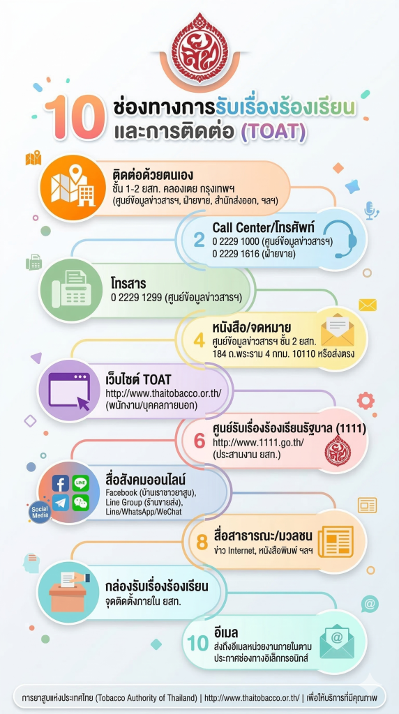 10 ช่องทางการรับเรื่องร้องเรียนและการติดต่อ(TOAT)